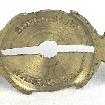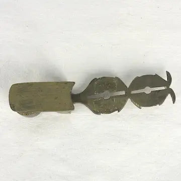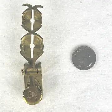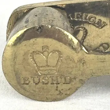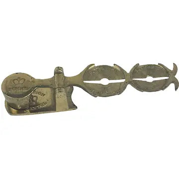 This antique English brass sovereign scale marked "Bushd", dating back to the 1800s, is the perfect portable tool for merchants to authenticate the weight of gold coins. With its authentic design, it provided accurate readings for confident transactions on the go. This interesting tool this is now the perfect piece of memorabilia to add to your antique collection.