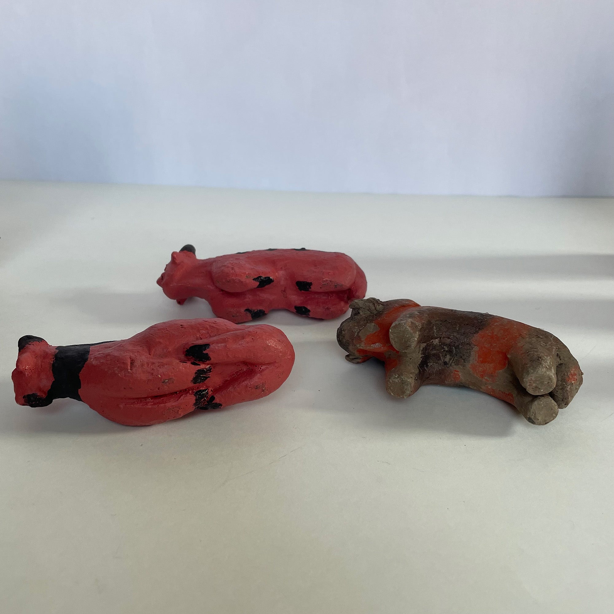 These figurines are in good vintage condition. The baby figure has a broken hand and is loose in his cradle.