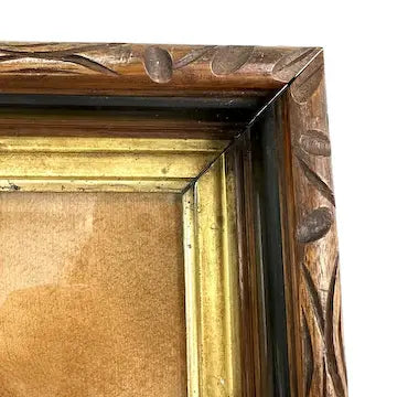 Victorian Carved Wood Picture Frame with Gilt Inset 7.5” x 9.5” Opening
