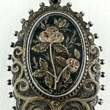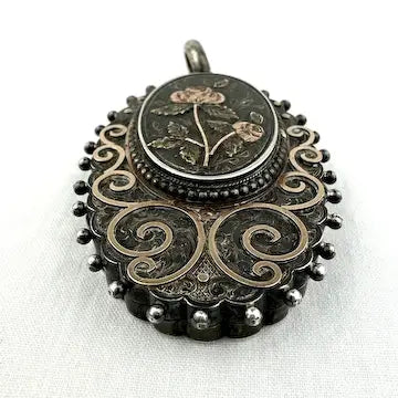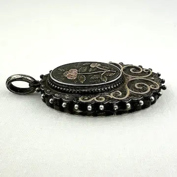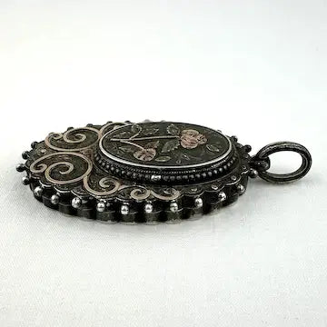 Victorian Sterling Silver Locket with Gold Applique