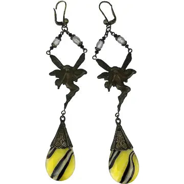 Art Nouveau Czech Saphiret & Art Glass Fairy Earrings