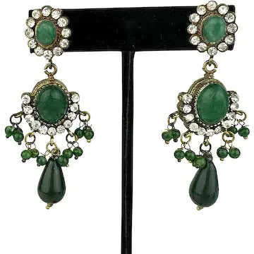 Victorian Jade Rhinestone and Glass Drop Earrings