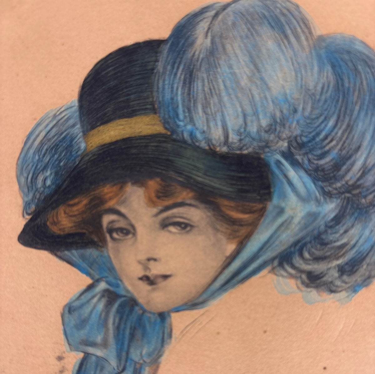 J. Royer Original Illustration Artwork of Victorian Lady with Plumed Hat