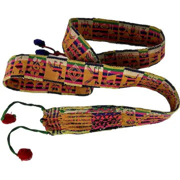 Antique Bolivian Hand Woven Wool Traditional Belt with Tassles
