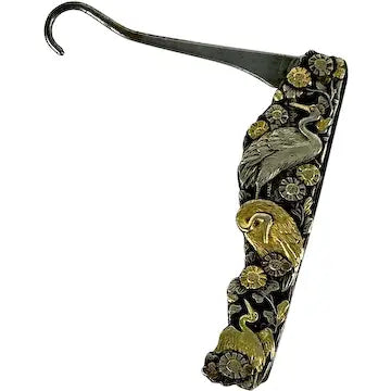 Antique Japanese Mixed Metal Shakudo Button Hook