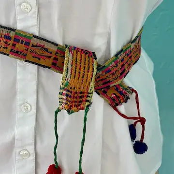 Antique Bolivian Hand Woven Wool Traditional Belt with Tassles