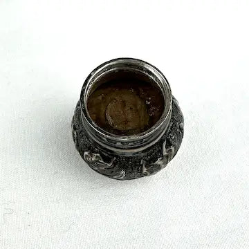 There are a few dents on the body and on the lid. The bottle has an aged patina which you could polish to a shine if that is your preference.