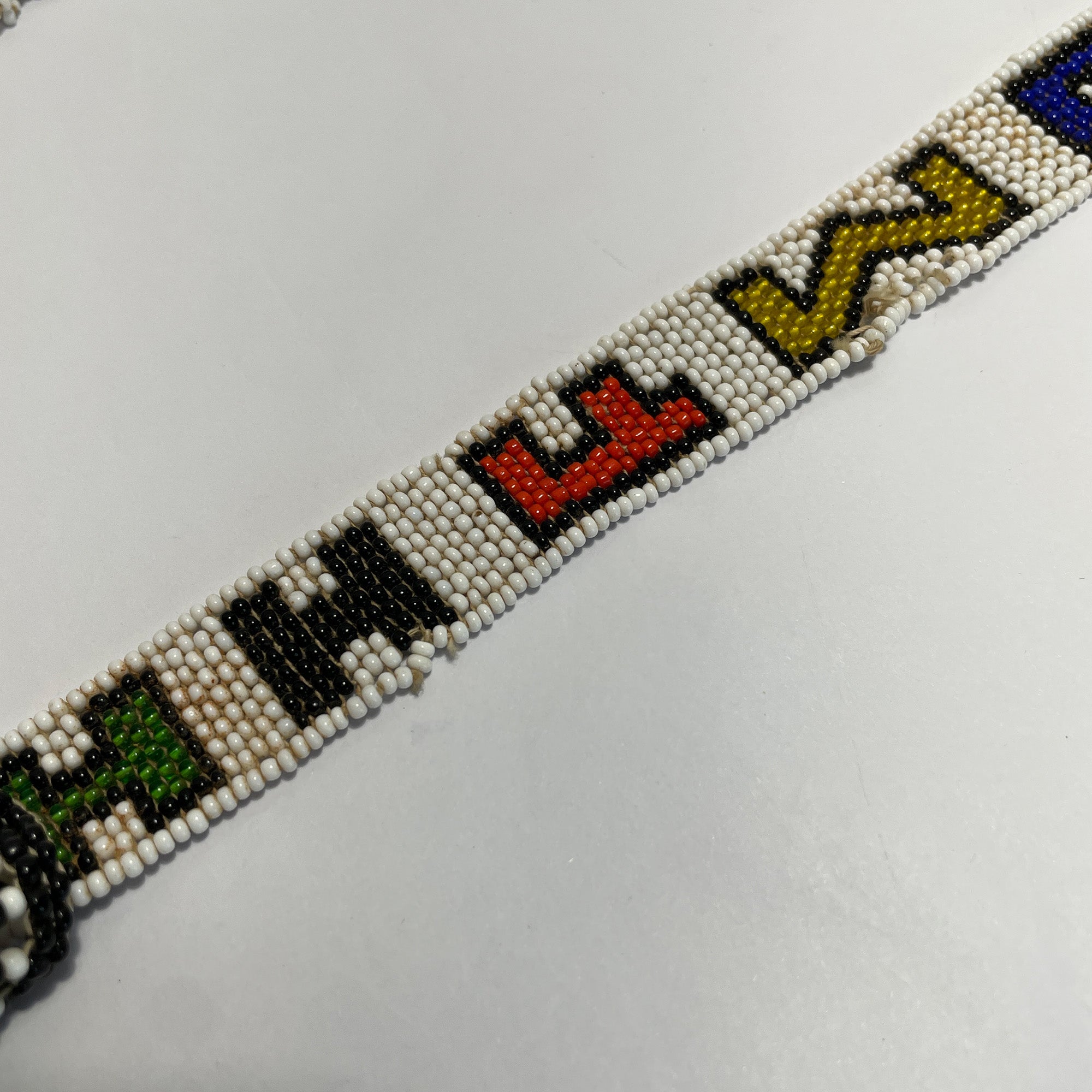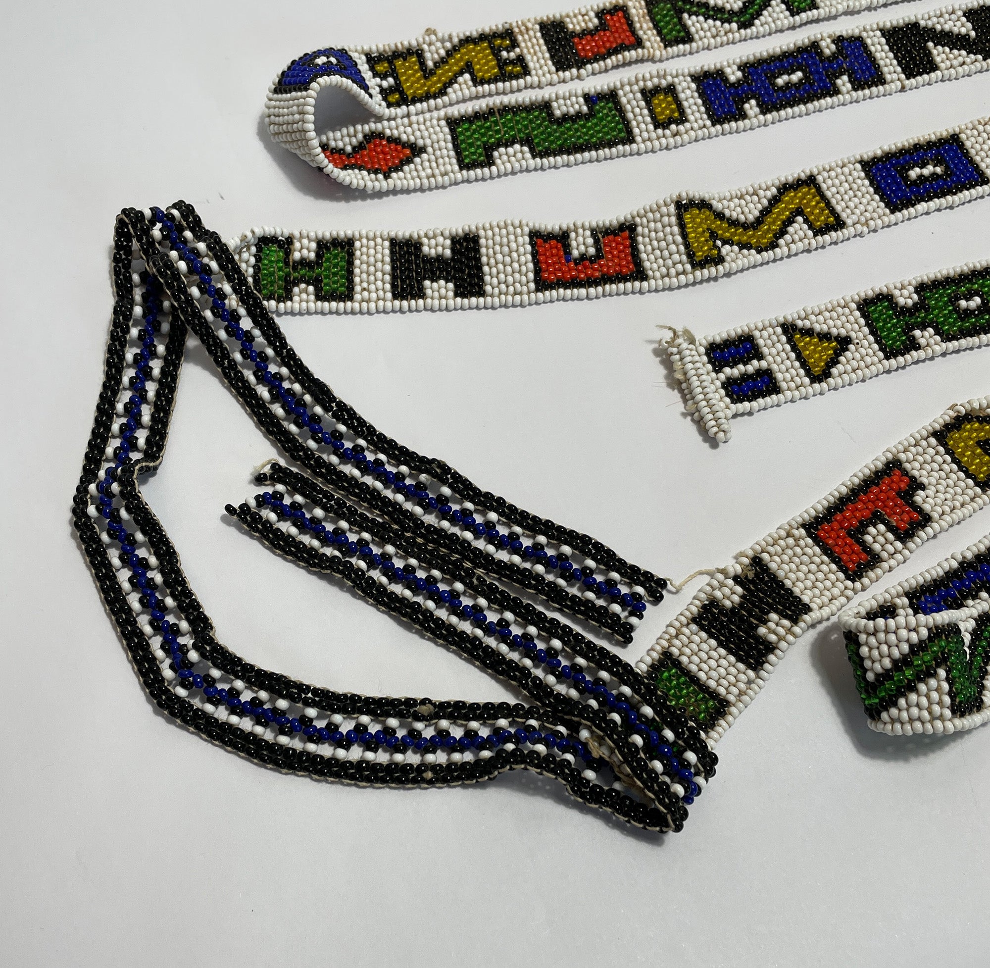 This rare traditional type of African headband was worn by Nbedele women when their sons were at an initiation camp. The long ends hang down from the headband and are called Linga Koba or long tears.