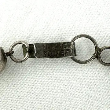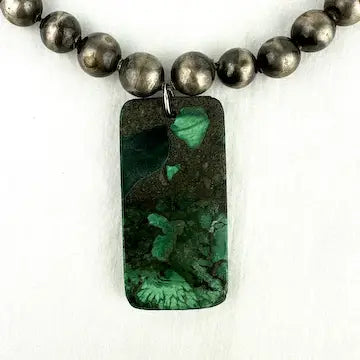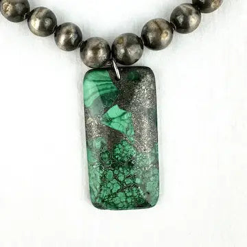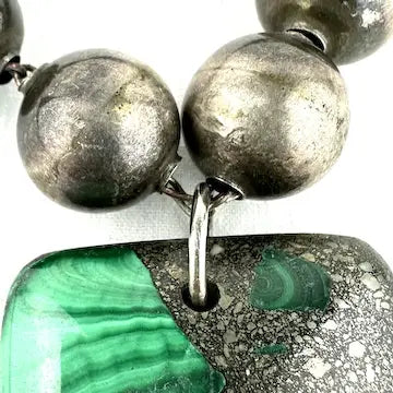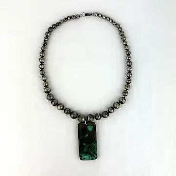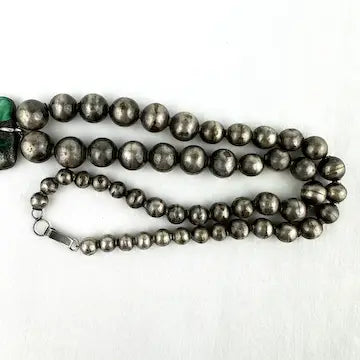 Early Mexican Silver Pearl Necklace with Malachite Pendant