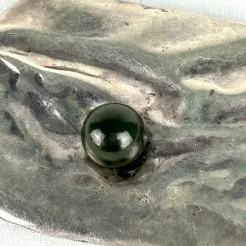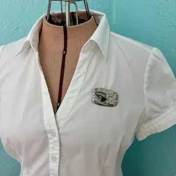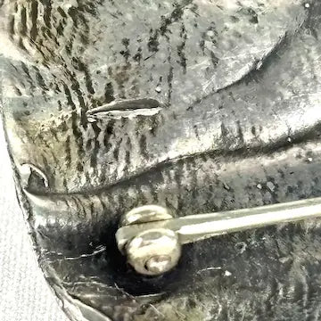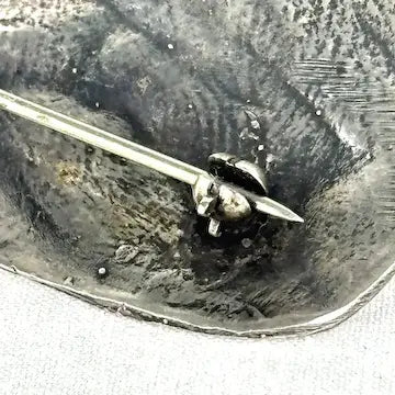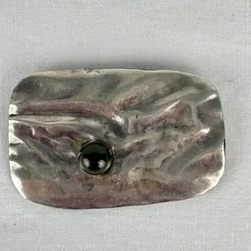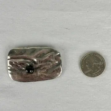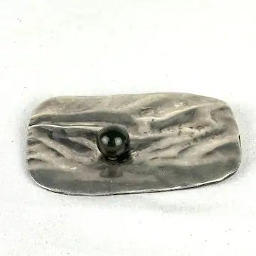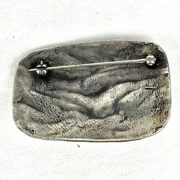 Add a touch of elegance and exclusivity to your outfit with this vintage artisan made silver modernist brooch. The rectangular shape and water texture design make this brooch a unique piece, while the jasper bead adds a touch of sophistication. Elevate your style with this one-of-a-kind accessory.
