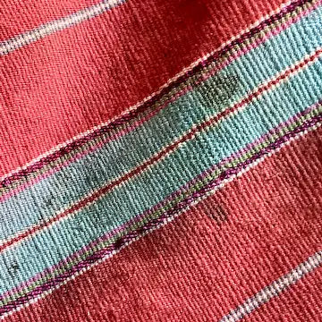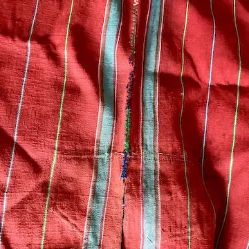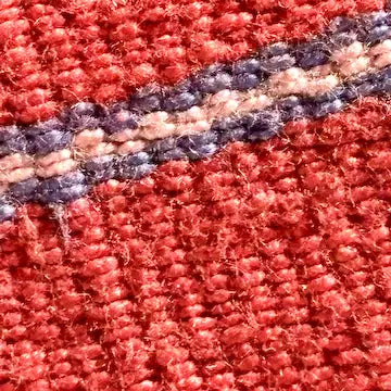 Expertly hand-woven with 18 threads per inch, this vintage Bolivian red wool fringed poncho showcases traditional design and expert craftsmanship. Made from luxurious red wool with stylish blue stripes and fringed detailing, it's the perfect statement piece for any fashion-forward individual.