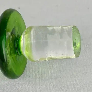 This vintage hand blown art glass perfume bottle features captivating yellow, blue, and green hues with controlled bubbles in the glass. Add a touch of elegance to your vanity or collection with this unique and one-of-a-kind piece.