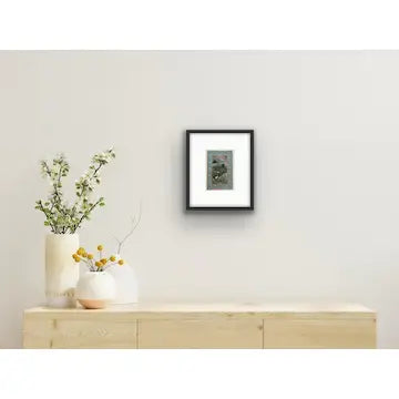 The silk is 4 1/2” x 7” and has a paper frame that is 7” x 11”