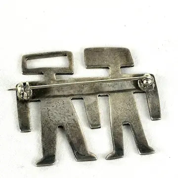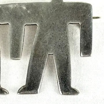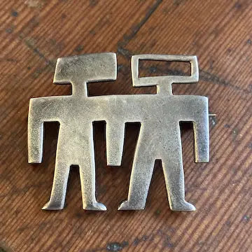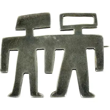Experience the unique beauty and craftsmanship of this vintage Mexican sterling silver cut out brooch. Handcrafted with petroglyph-inspired human figures, this brooch is the perfect blend of ancient art and modern style. Made of high-quality sterling silver, it's a timeless piece that will make a bold statement in any outfit.