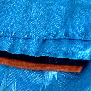 This is in fair condition a few of the seams are loose and there are a few stains on the blue silk part of the blouse.
