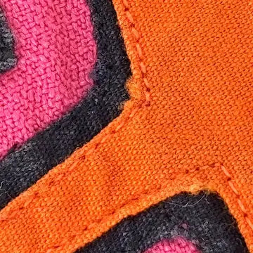 These Vintage Pair of Kuna Tribe Mola Pillow Cases are a must-have for any home decor collector. Each case is handmade using the traditional Mola technique by a Kuna woman in San Blas, Panama. The bright orange and black geometric shapes are expertly crafted using reverse applique, making each case truly unique. Bring a touch of culture and artistry to your home with these vintage pillow cases.